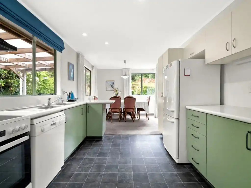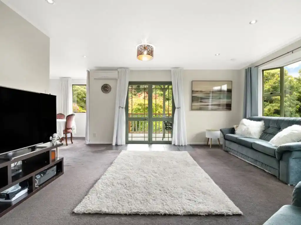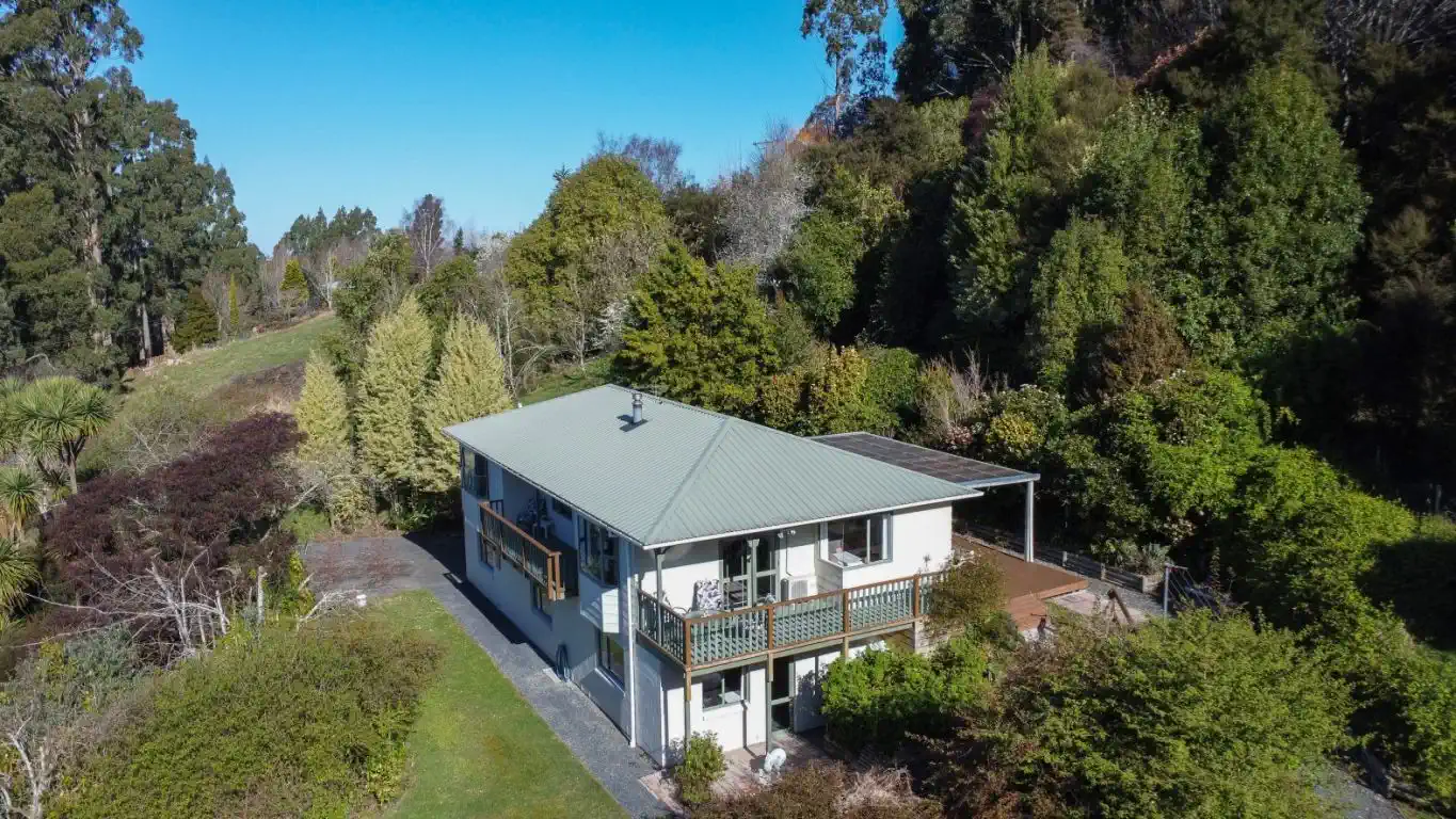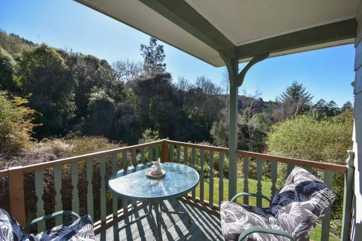 This 36996m² hillside property offers plenty of space for animals and outdoor life, with grazing paddocks and an established orchard of fruit trees. A natural cascading stream tumbles over rocks, adding serenity to the landscape, while bush-clad walking tracks provide private escapes through native trees and birdsong. From the top of the property, enjoy expansive views across the city.
